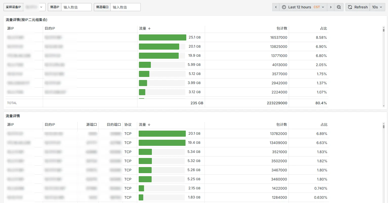 GoFlow2项目中提供了一个简单的Dashboard示例,可在此基础上构建面板,无非就是搓一些SQL,这个看实际需求了。